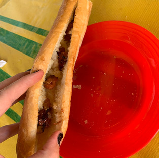 The mystery meat is spare so it’s mostly baguette but it’s all we have.